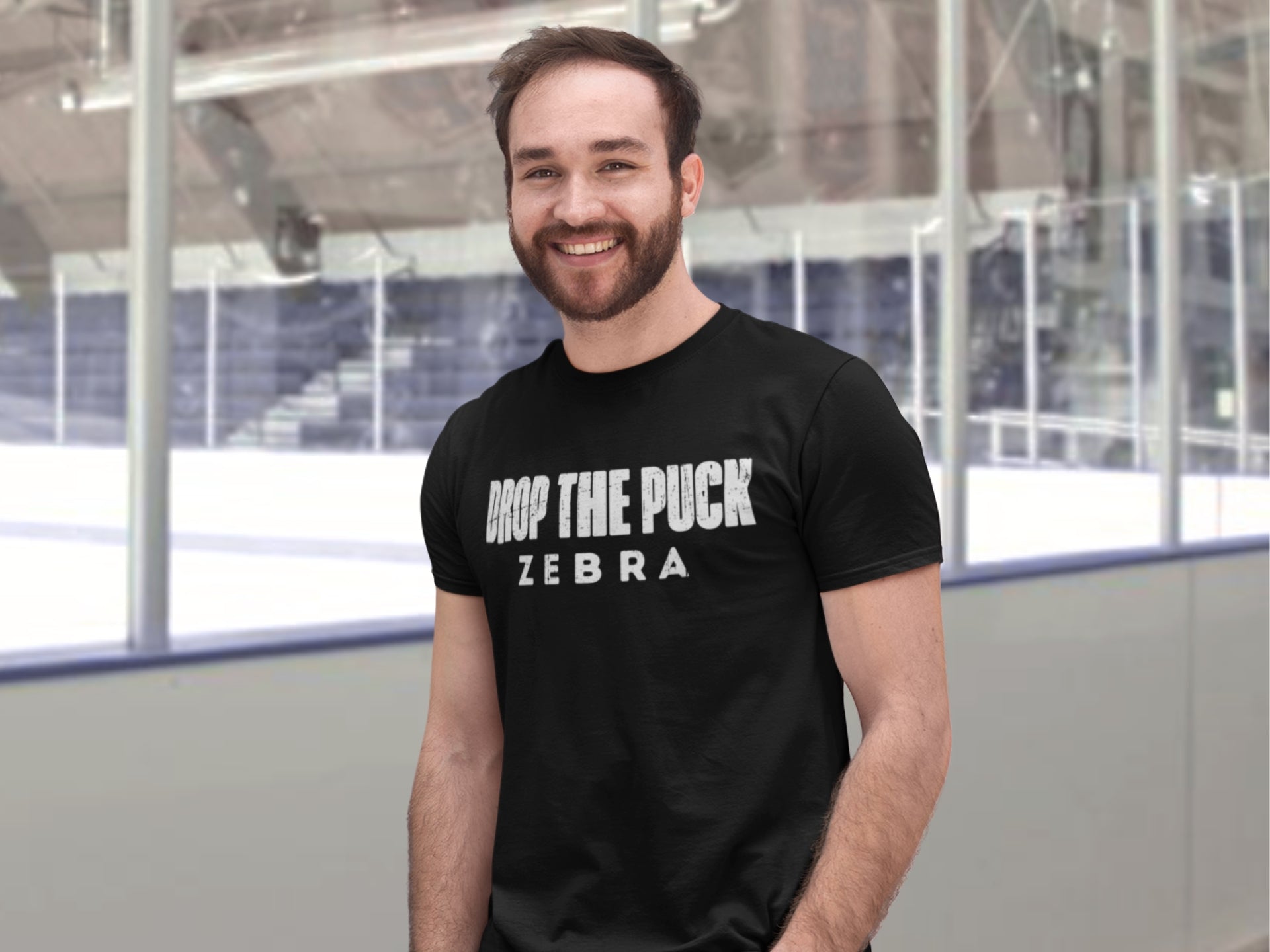 Funny Hockey T-Shirt - Drop The Puck Zebra Unisex Hockey Shirt